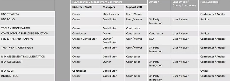 Every employee and contractor engaged by H2O logistics will undergo our Contractor & Employee Induction process, which includes our H&S Policy, orientation and awareness of Risks that have been identified, Lifting & Shifting awareness, Lone Worker awareness and specific attention to vehicles, driving and delivering. We also ensure that the End-client requirements for contractors in their workspace are covered at this time. Contractors are made aware of their responsibilities with regard to H&S, are handed a set of documents and asked to accept our policies and procedures as part of our contract with them.