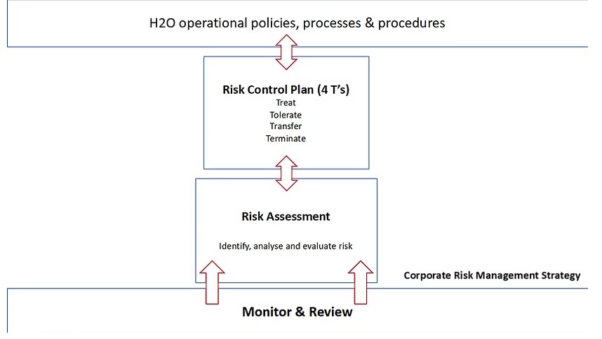 5.1 A risk assessment is the careful examination of what in the workplace could cause harm to a person or person. H2O will continually assess any risks to its staff, contractors, clients or any person affected by its business activities arising from the day to day task or duties of its staff & contractors and if necessary introduce measures, practices or process to control and mitigate these risks and where practicable provide suitable training or educational support to its staff or contractors to accompany any such changes.